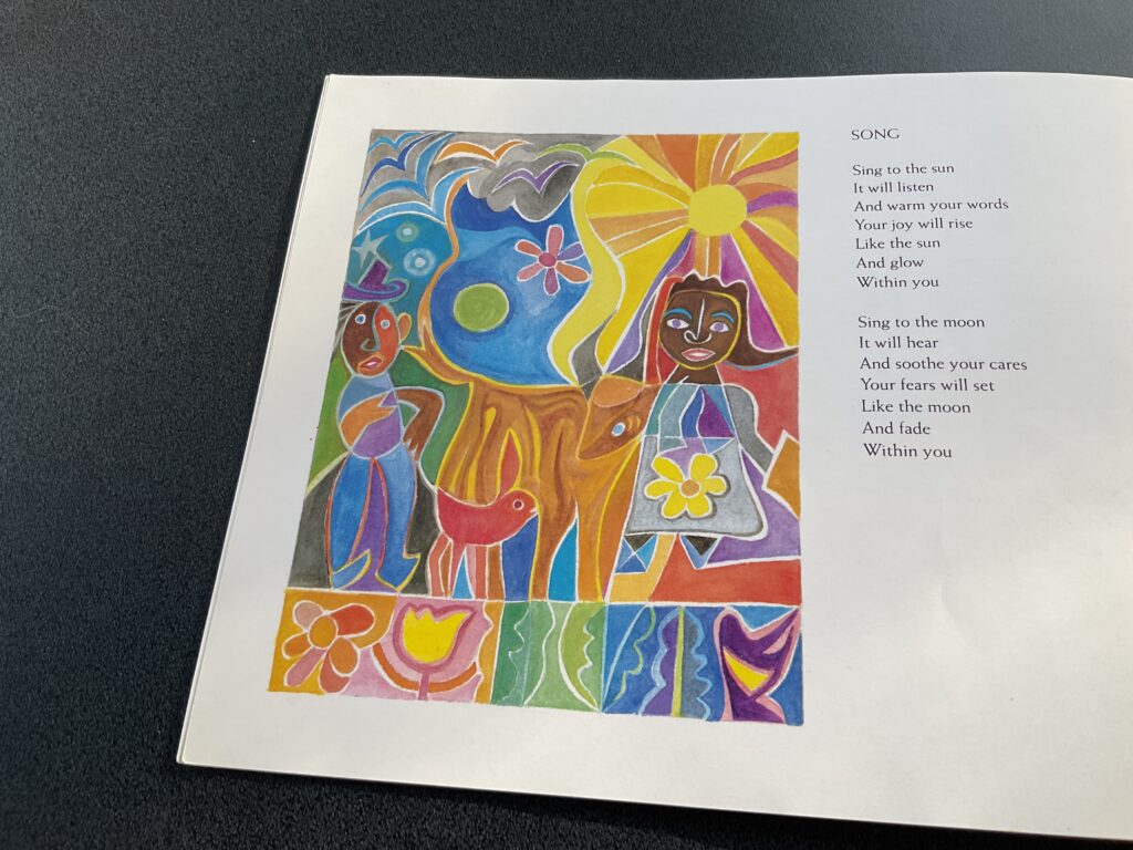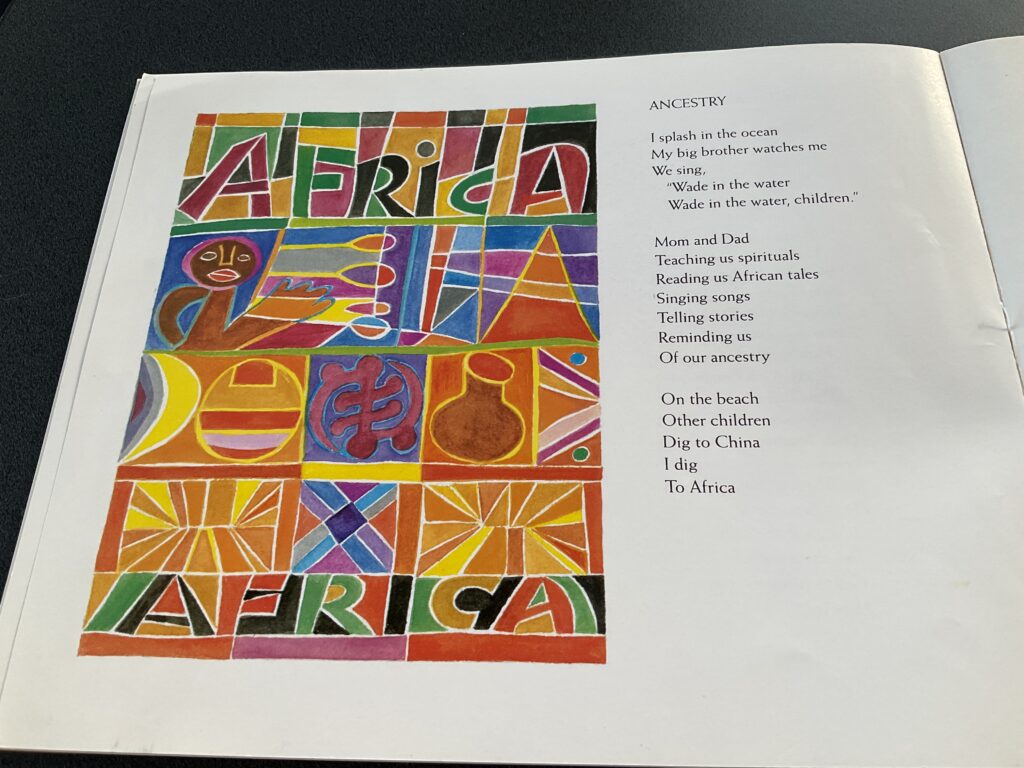 I had the amazing good luck to work with Ashley on two occasions called Poetry Concerts. The creation of the Milwaukee Public Library, these events consisted of a week of special poetry and art workshops in local grade schools culminating with a gala performance, or concert, featuring the week’s special guest and mentor, a nationally famous children’s book poet and writer. Without a doubt, Ashley Bryan was the most dynamic person I have ever met.