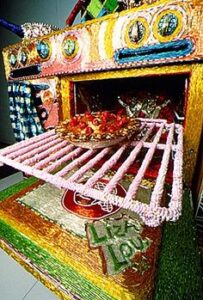 Last week’s blog featured the Vochol, a beaded Volkswagen. This week is about a more domestic beaded creation, an entire kitchen, and it is the work of one person.