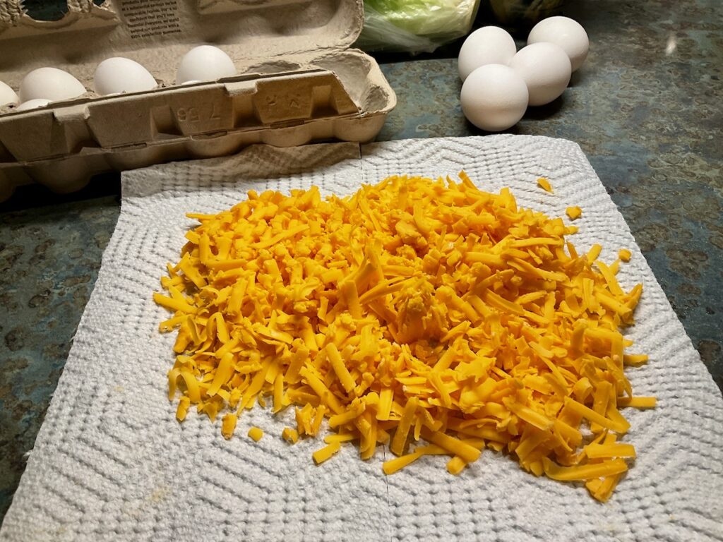 P.S. – My big block of cheddar, when grated, was enough for two large quiches and two casseroles of Mac & cheese.
