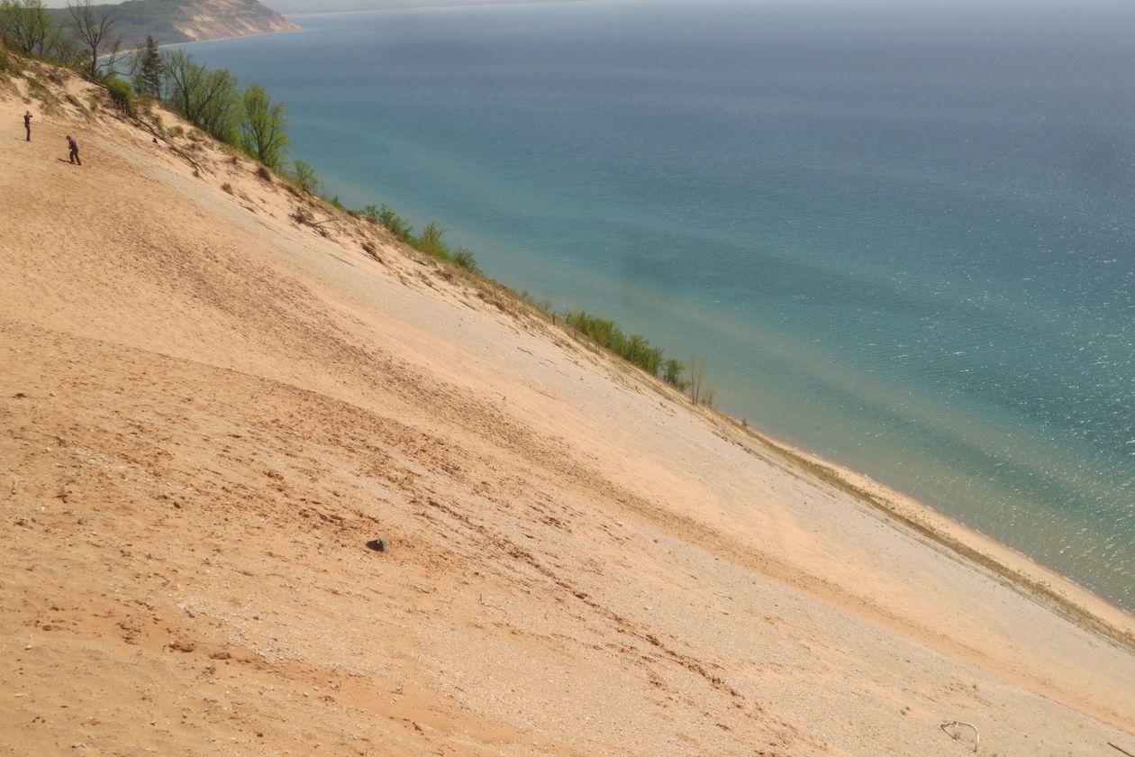 We have been ripped off. The sandy bluff in our front yard on the western shore of Lake Michigan is 70 feet high. Across the Lake and about 60 miles north, one of the dunes in Sleeping Bear Dunes National Lakeshore in Michigan is 450 feet high.