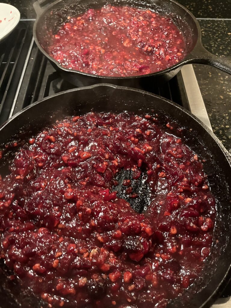 “Mom served the canned cranberry jelly. As a kid I really thought the ridges that reflected the can’s shape were a fancy part of Thanksgiving dinner preparation. Also, it was literally plopped on a little glass dish that I now have at my home. Served Triscuit crackers and cheese on it last night😊. My teeth ache just thinking about that canned magic….”