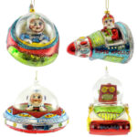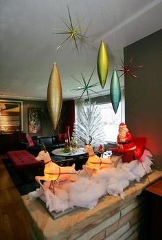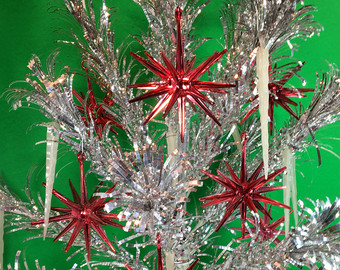 Midcentury Christmas decorations reflected all these trends. Aluminum Christmas trees flourished. Sputnik shaped ornaments decorated the metal trees. Space age Santas were in vogue.