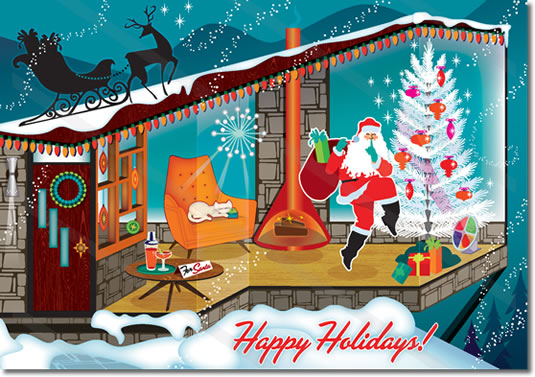 For thirty years, we lived in a small, midcentury modern house. (See Atomic in the archives.) We loved our atomic ranch but knew that “Christmas” and “modern” were polar opposites.