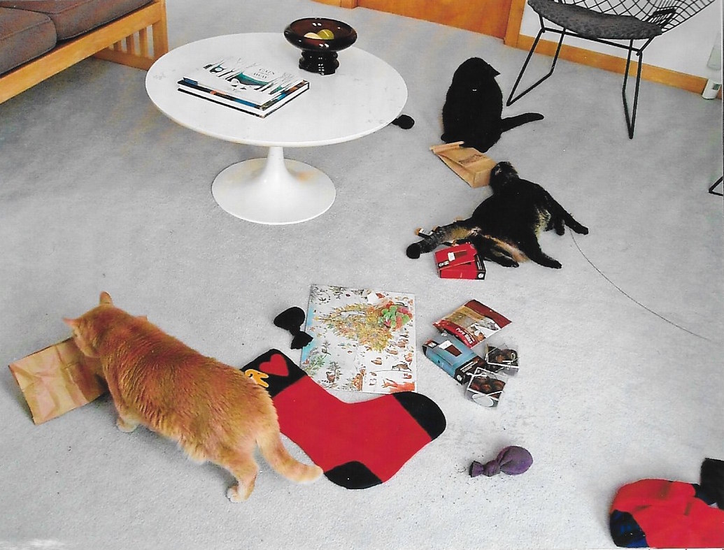 Every year, my husband and I put up our stockings on the night of December 5th. Here is our version of ‘Een huishouden van Jan Steen’ the next morning.