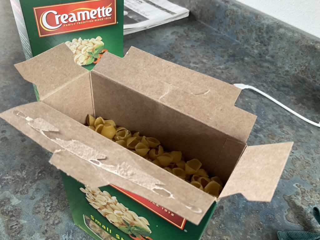 For example, I recently opened boxes of Panko and macaroni and was staring at this. These contents did not “settle during shipping.” They packed their bags and left.