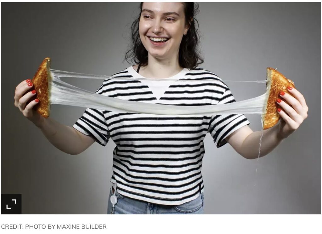 Now we all have an excuse to play with our grilled cheese sandwiches…we’re doing scientific research on their stretching qualities.