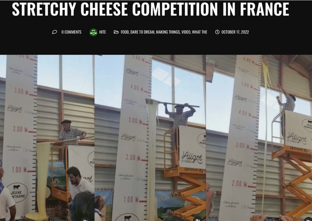 Leave it to the French to dream up a cheese stretching contest. Being a devoted cheese fan, I immediately had to learn more about the contest and cheese stretchiness.
