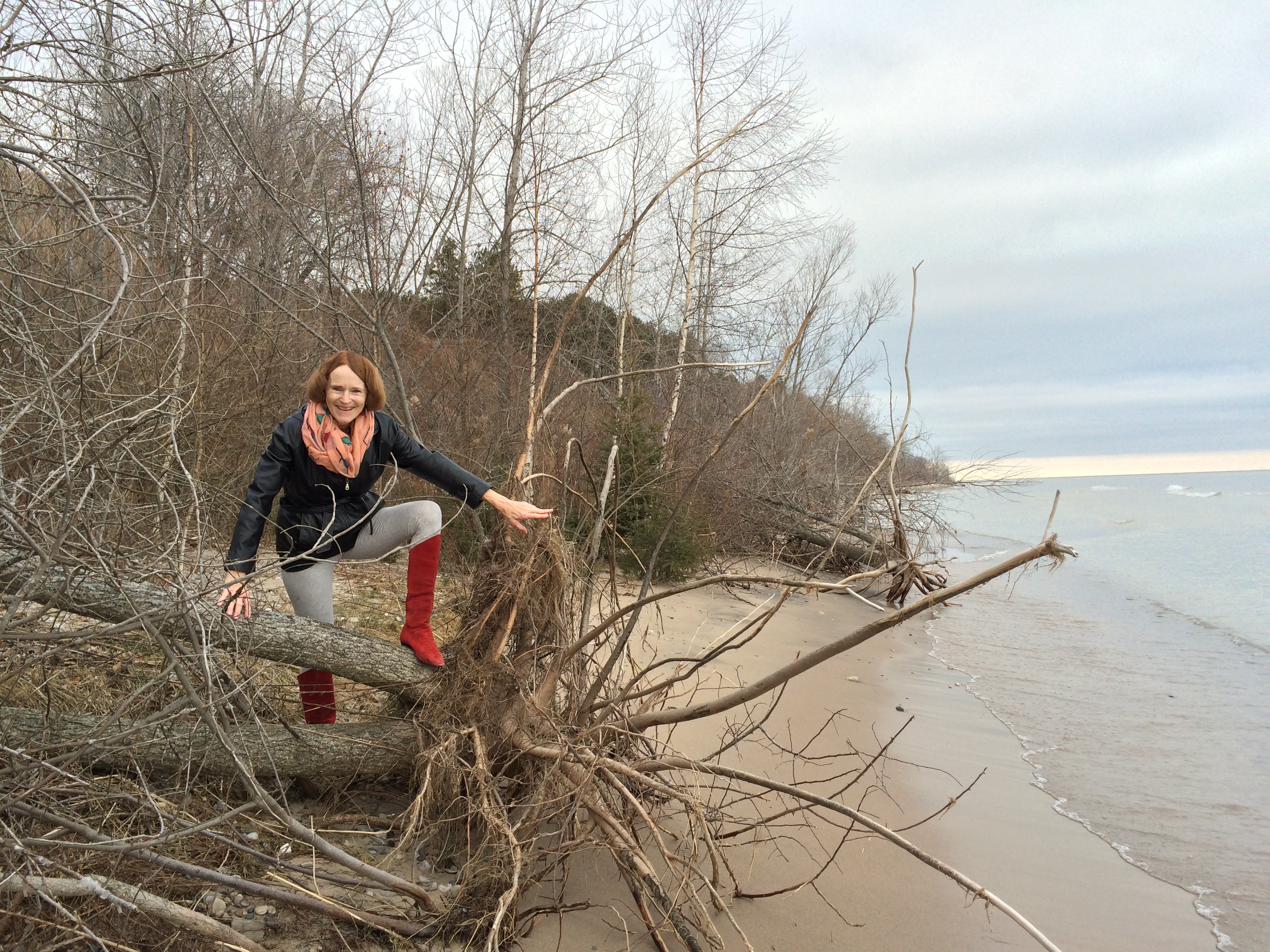 It’s been a tough year for the trees along our shoreline. Many of them have been upended by the waves and are scattered helter-skelter along the beach. Taking a beach walk these days involves much climbing over felled tree trunks, ducking under limbs at rakish angles or parting branches to make an opening big enough to squeeze through.